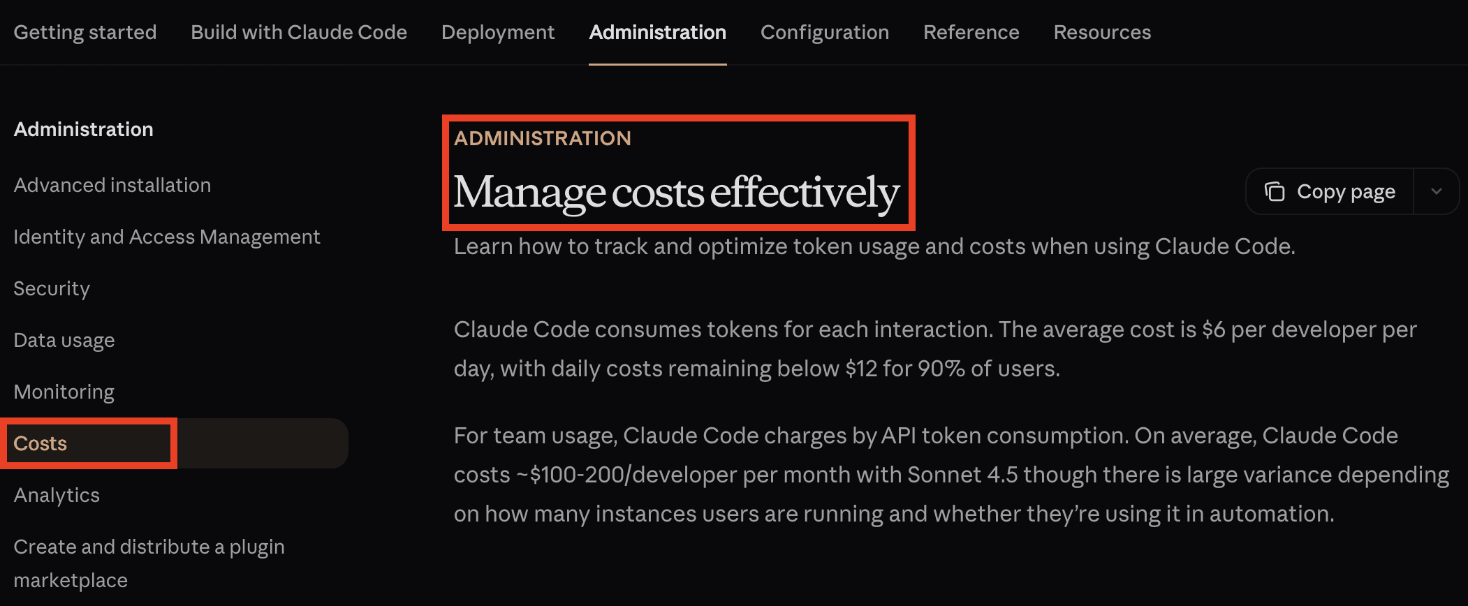 Claude Code Docs 공식 문서 >> [관리] 섹션의 내용 중 [Claude Code 설정 - 비용을 효과적으로 관리하기(Manage costs effectively)]를 살펴 보려고 합니다.