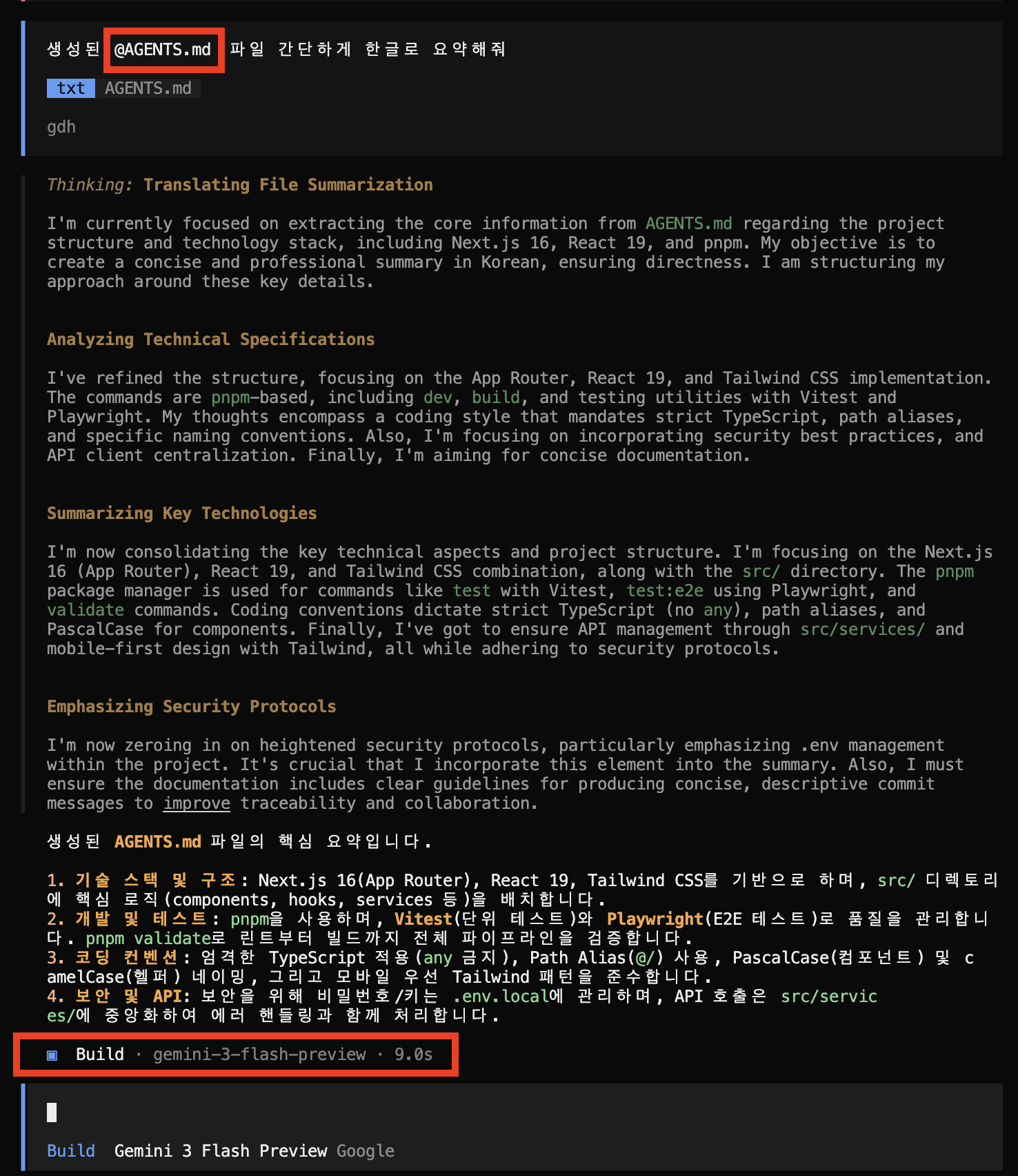 이 워크플로우를 활용하려면 먼저 Plan 에이전트(Tab 키로 전환)에서 기능을 설계하고, 설계가 확정되면 Build 에이전트로 전환하여 구현한다. 각 단계를 순차적으로 진행하면 품질을 유지하면서 개발 속도를 높일 수 있다.