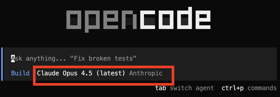 opencode 라고 입력하여 초기화면이 잘 노출되는지도 확인 가능 하다.