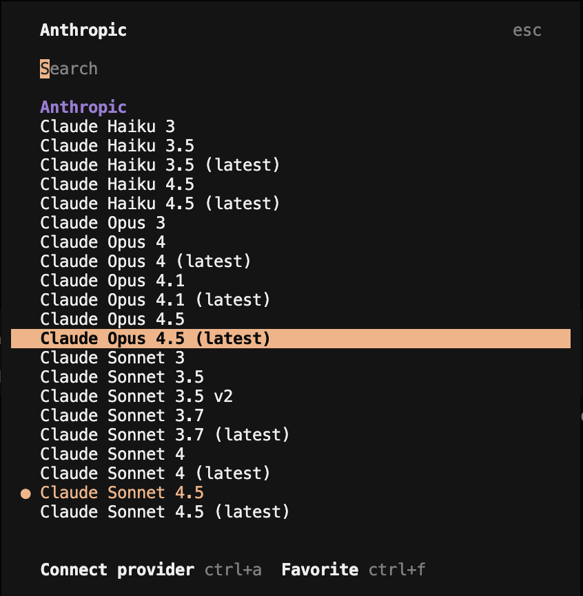 이 워크플로우의 효과를 극대화하려면 각 단계에 적합한 LLM 모델을 선택하는 것이 중요하다. OpenCode는 세션 중간에도 모델을 전환할 수 있어 비용과 품질을 모두 최적화할 수 있다.