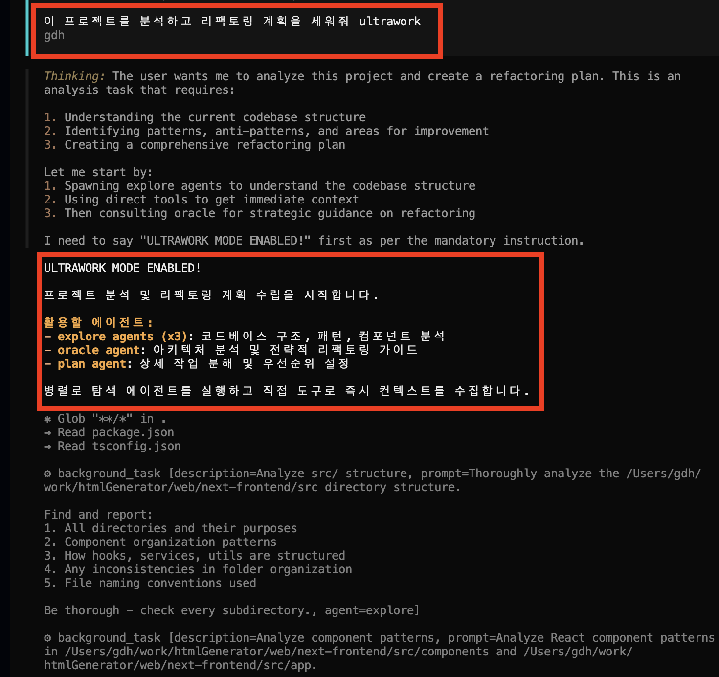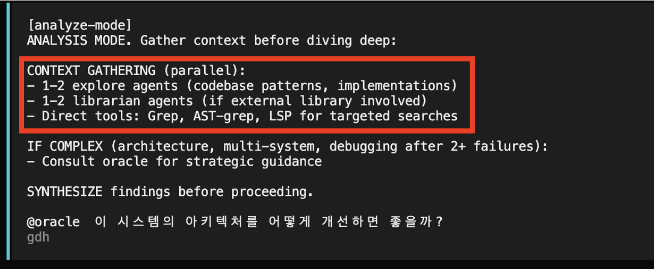 ultrawork 활성화• 에이전트 직접 호출(@oracle 등)로 필요한 기능만 사용