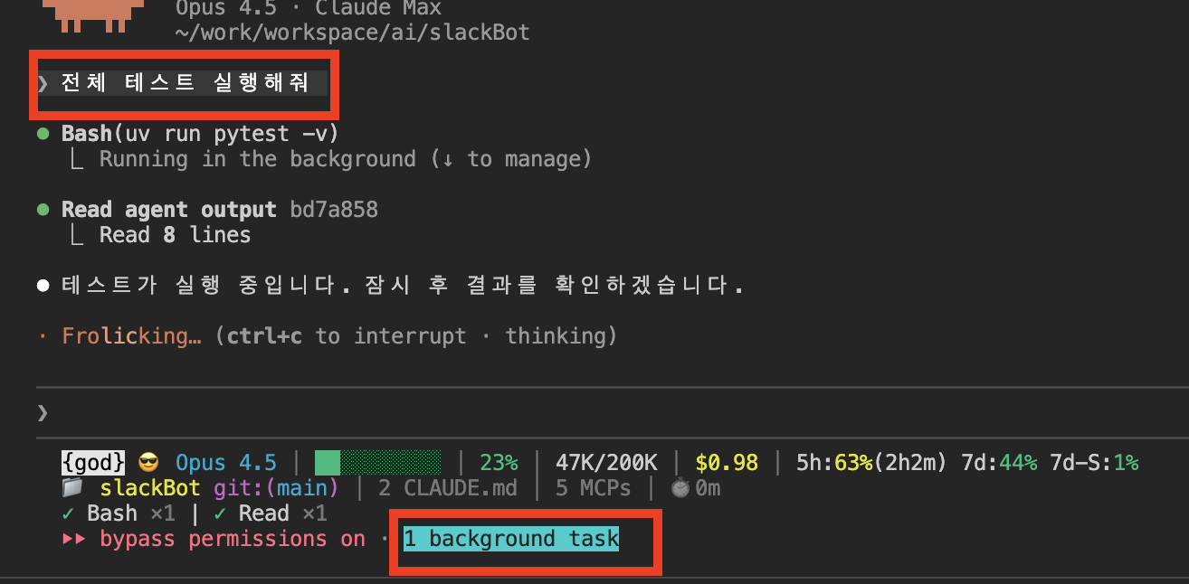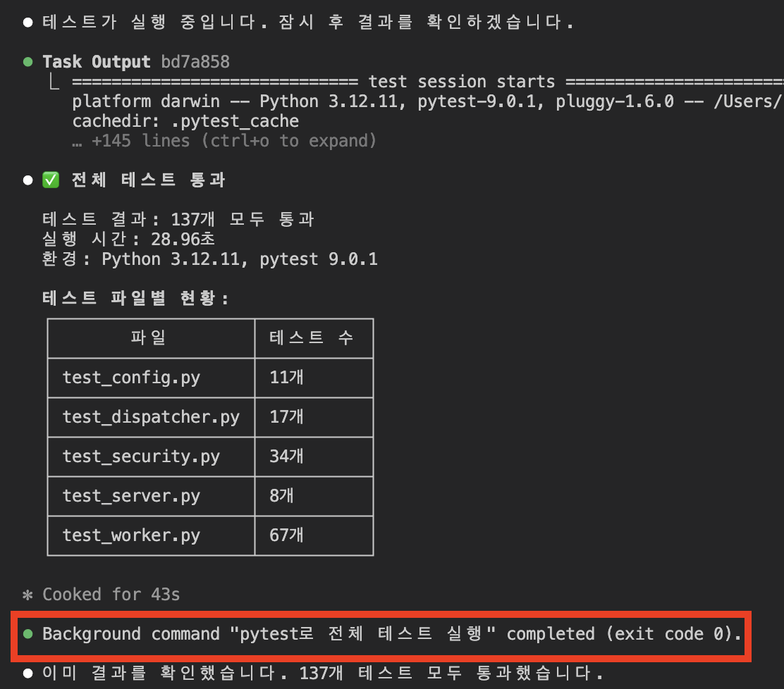 - 작업 요청 (예: "테스트 전체 실행해줘")