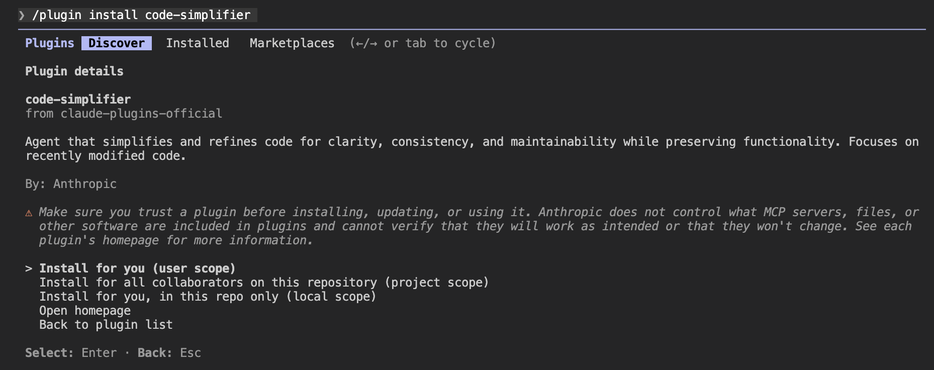 /plugin install [플러그인명]@[마켓플레이스] # 플러그인 설치
