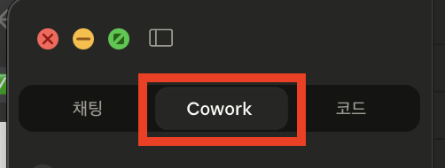 2. 상단에 "Chat"과 "Cowork" 두 개의 탭이 보인다.