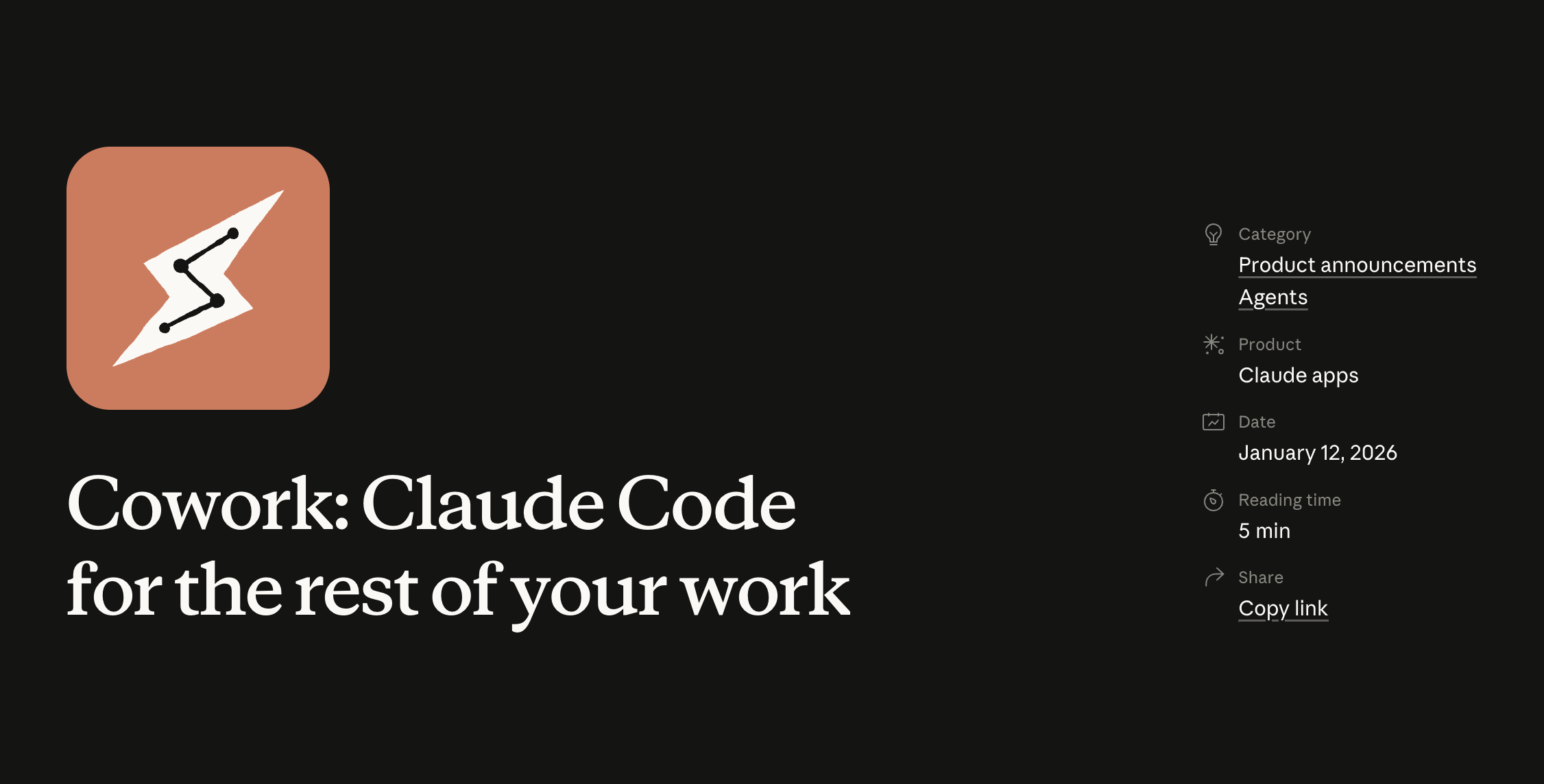 Claude Cowork는 2026년 1월 12일에 출시된 Claude Desktop의 새로운 기능이다.