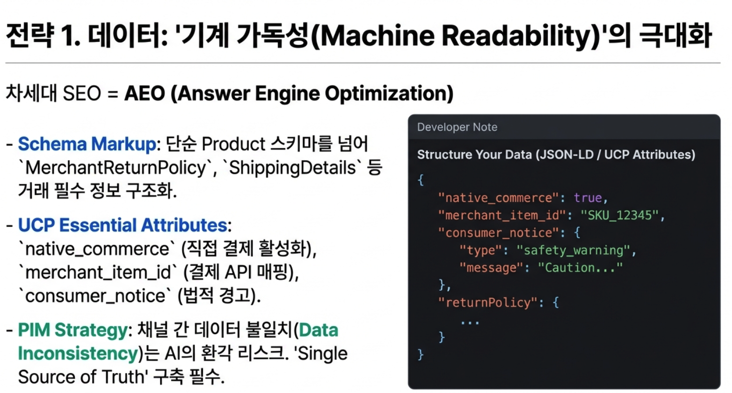 - 대응 전략: AEO(답변 엔진 최적화), Schema Markup, 실시간 API 구축