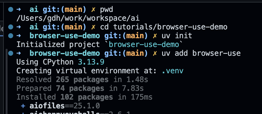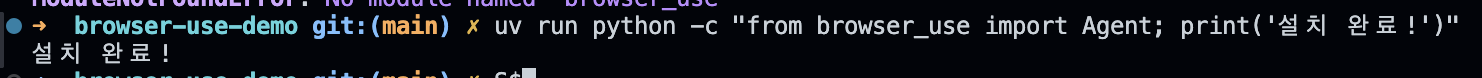 uv run python -c "from browser_use import Agent; print('설치 완료!')"