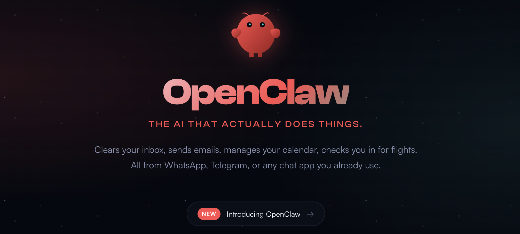 "Your own personal AI assistant. Any OS. Any Platform. The lobster way."