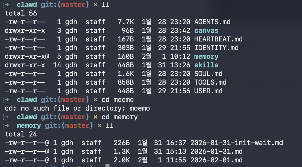 └── memory/ # ⭐ 일일 로그 디렉토리