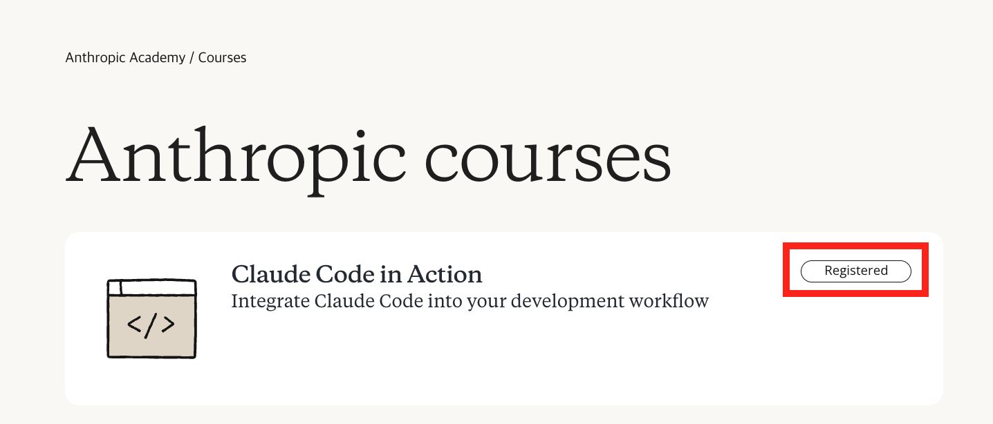 ex) SignUp 하고 SignIn하여 로그인 완료 하면 자동으로 Claude Code In Action 옆에 Registereed 라고 마킹 되어있는것을 볼 수 있을 것 이다.