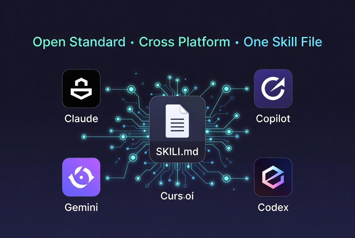 실제로는 Agent Skill은 특정 벤더에 종속되지 않는 오픈 표준 규격이다. SKILL.md 파일 형식을 따르는 모든 스킬은 표준을 지원하는 어떤 AI 에이전트에서도 작동한다.