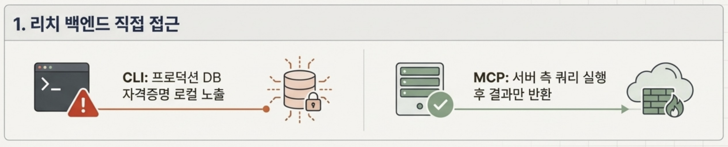 | 단계 | CLI 접근 | MCP 접근 |