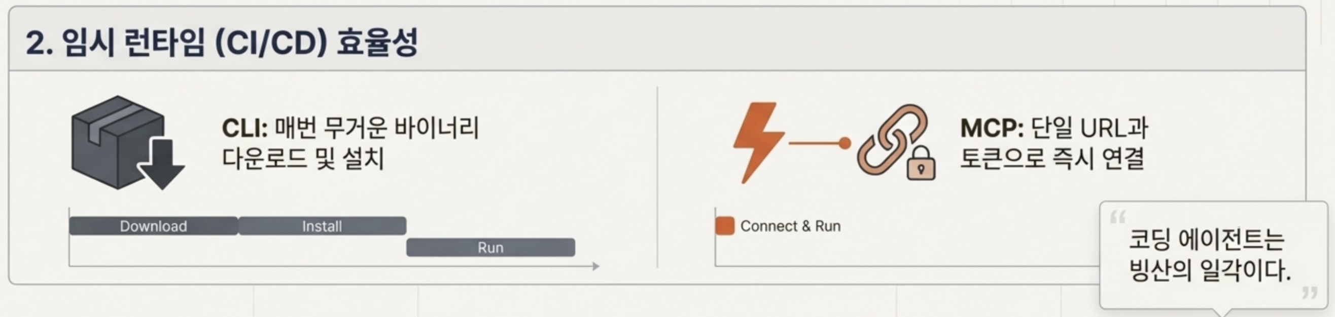 - CI/CD 파이프라인의 에이전트: HTTP MCP가 CLI보다 편리